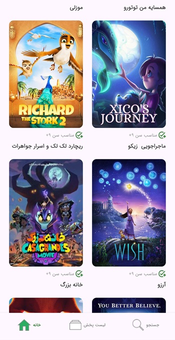 -امکان انتخاب محتوای قابل پخش در اپ کودک توسط والدین