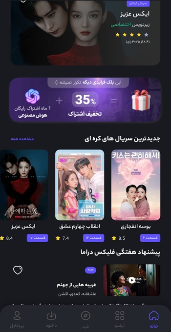 این حجم بالای محتوا، تنوع و گستردگی فوقالعادهای را به کاربران ارائه میدهد و آنها را قادر میسازد تا از میان گزینههای بیشمار، محتوای مورد علاقه خود را پیدا کنند. یکی دیگر از قابلیتهای بارز این اپلیکیشن، ارائه زیرنویس فارسی چسبیده برای همه فیلمها و سریالهاست. این امر به کاربران کمک میکند تا به راحتی و با درک بهتر محتوا، آثار را تماشا کنند. در اپلیکیشن flixdrama امکان دانلود فیلمها و سریالها در حافظه گوشی نیز فراهم شده تا کاربران بتوانند محتوای مورد علاقه خود را در هر زمان و مکان تماشا کنند.