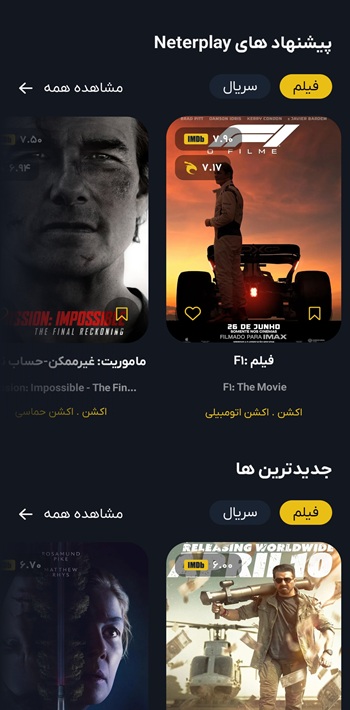 دستهبندی محتوا: فیلمها و سریالها در بخشهای جداگانه و قابل جستجو عرضه میشوند