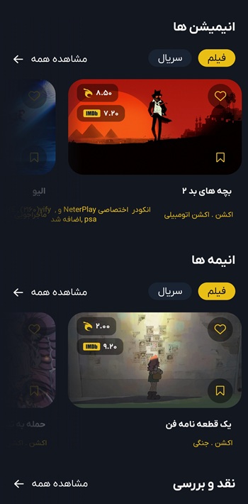 امکان دانلود، تماشا آنلاین و ذخیره در لیست علاقهمندی