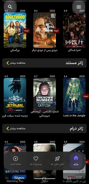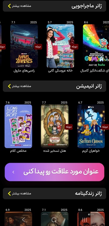 بهرهمند شوید. این اپلیکیشن تمامی ژانرهای فیلم و سریال را پوشش میدهد؛ از اکشن، درام و کمدی گرفته تا مستند، انیمیشن و فیلمهای علمی تخیلی.